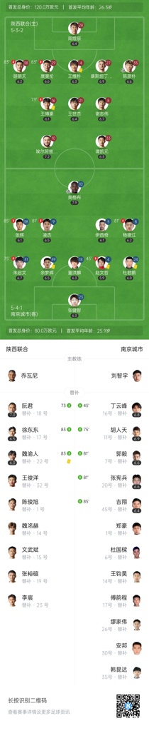 第33分钟,陕西左路送出传中,陈彦朴跟进头球破门,陕西联合1-0南京城市。↓