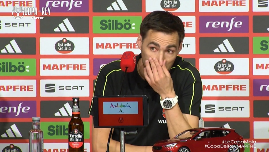 西班牙足协安排了本次比赛的裁判组出席发布会,其中主裁德布尔戈斯在被问及皇马TV的争议判罚视频时流泪。